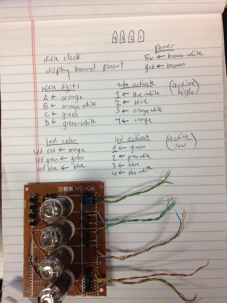 I used four IN-14 Nixie tubes, imported from Ukraine. These tubes are new old stock, left over from the former Soviet Union, and were relatively inexpensive compared to their scarce western counterparts! The shape of the IN-14 was particularly appealing because it would allow the tubes to stick right out of the top of the clock!