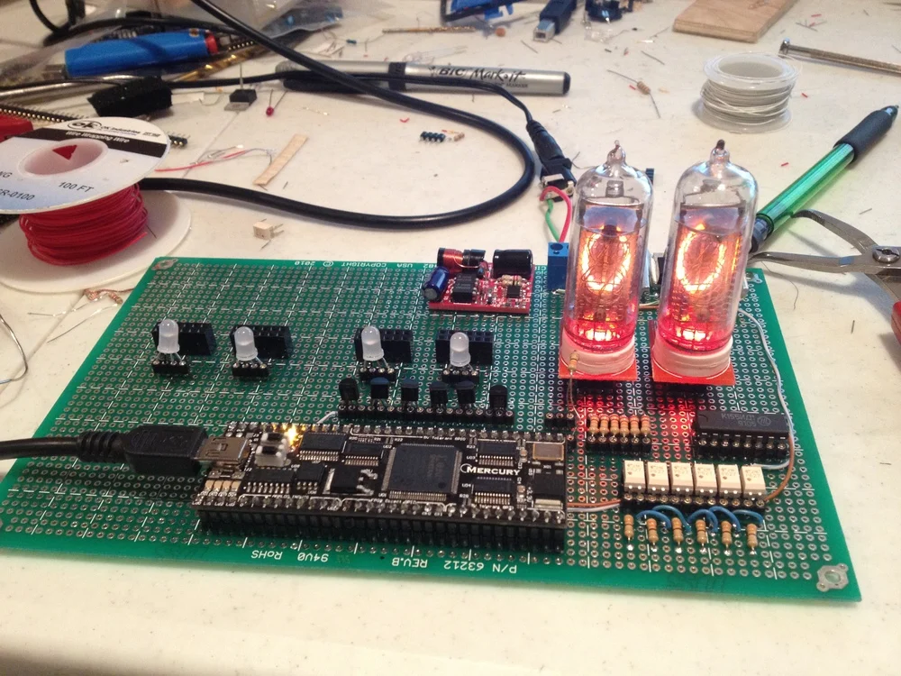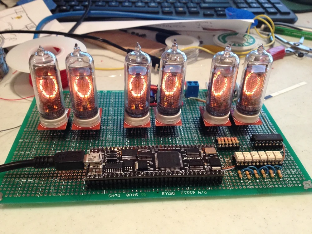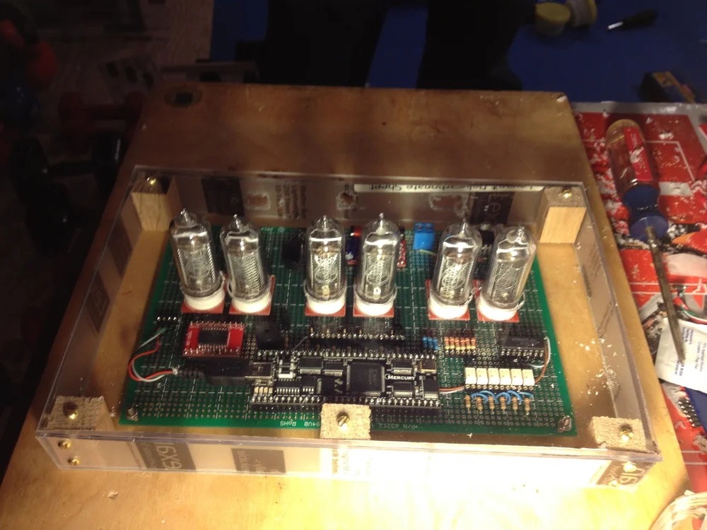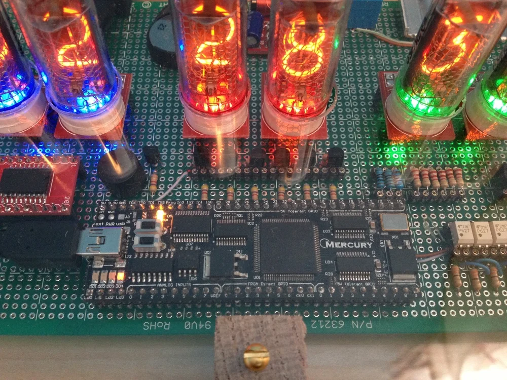 - The Nixie tubes are mounted on removable headers to easily swap out a burnt-out tube.