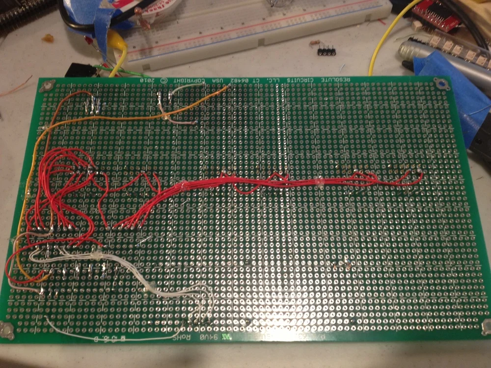 Underside of the completed Nixie clock. Next time I do this, I am definitely making a PCB! This takes way too long to solder...