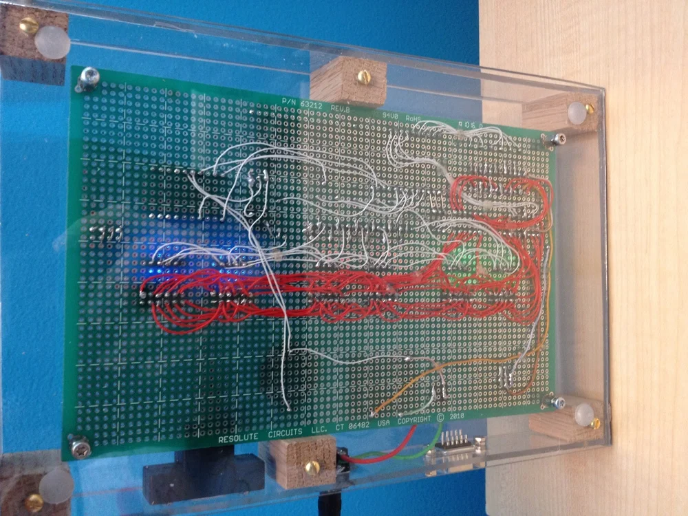 The clock is set via a USB interface on the back of the clock that connects to the Mercury FPGA board. Time is kept with a battery-backed DS3232 real-time clock connected via I2C interface to the Mercury FPGA. The DS3232 has an internal temperature-compensated crystal oscillator (TXCO), providing accuracy of ±2ppm, or about 1 minute per year.